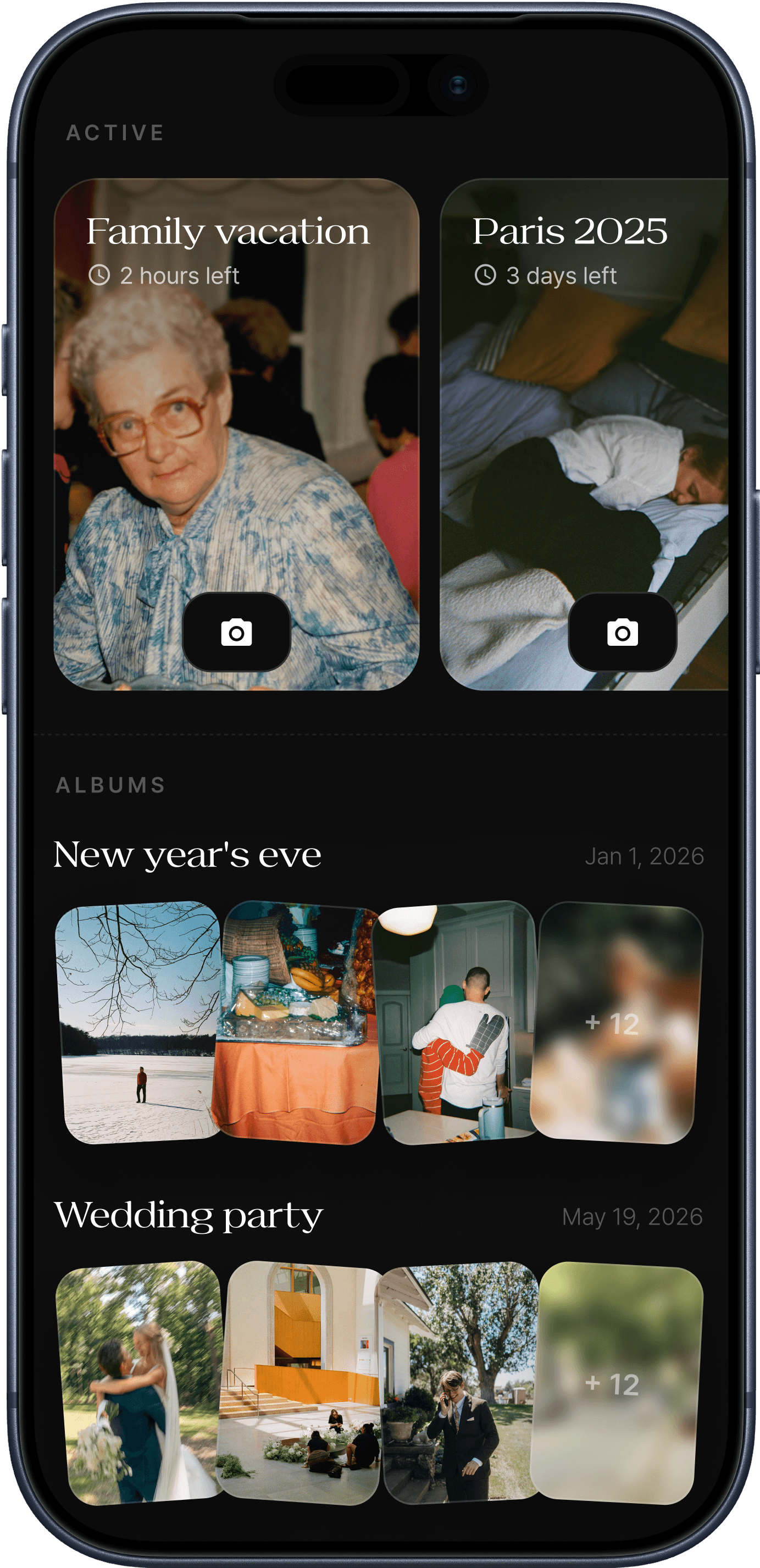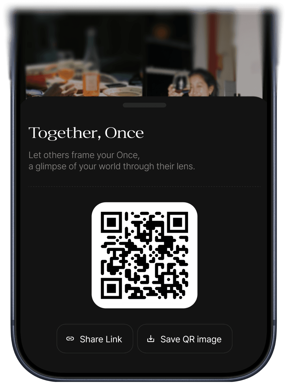 Once is a premium, private photo sharing app for events. Guests join via QR (no download), snap memorable photos, and the album reveals after the event.
