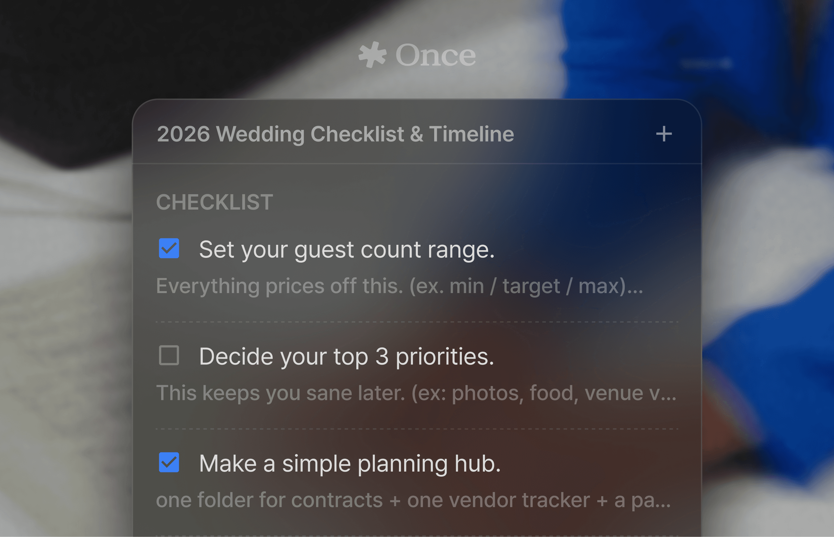 Decide your top 3 priorities (ex: photos, food, venue vibe). This keeps you sane later.